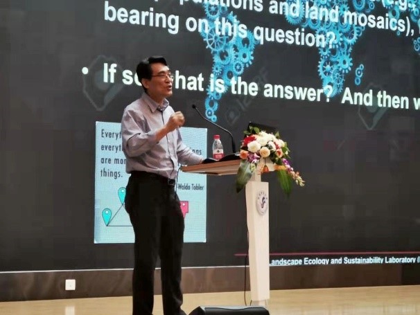7月14日,邬建国教授以及来自中国科学院西北生态环境资源研究院的丁永建研究员和拓万全研究员、北京师范大学的李小雁教授、中国科学院地理科学与资源研究所的方创琳研究员和北京师范大学的陈彬教授分别作了学术报告。报告题目依次为:“可持续科学的景观/区域途径”;“冰冻圈变化对可持续发展的影响”;“柴达木盆地水循环全过程高效利用与生态保护技术”;“寒区水文土壤学与地球关键带研究”;“城镇化与生态环境近远程耦合机理及城市群可持续发展”;“城市资源代谢研究”。
