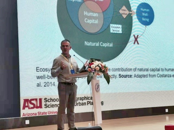 7月13日,本次论坛开幕,论坛联合主席邬建国教授和人妻偷情 副校长许存宁教授分别致辞。随后,来自美国加州大学河滨分校的Darrel Jenerette教授、瑞典哥德堡大学的陈德亮院士、中国科学院生态环境研究中心的傅伯杰院士、美国亚利桑那州立大学的Matei Georgescu副教授、美国佛罗里达大学的仇江啸博士和美国亚利桑那州立大学的廖川博士分别作了学术报告。报告题目依次为:“Enhancing landscape resilience at the urban, agricultural, and natural lands nexus(增强城市、农业和自然土地之间的景观弹性)”;“Why does 1.5℃ warming goal matter to aridification and migration?(为什么1.5℃温升目标对干旱化和迁移很重要?)”;“Coupling Human-Earth Systems for Sustainability(可持续框架中的人地系统耦合)”;“Sustainable Urban Systems – An Agri-Climatic Perspective(可持续城市系统——基于农业-气候的视角)”;“Consequences of above- and belowground drivers on ecosystem services across scales(地上和地下驱动因素对生态系统服务的跨尺度影响)”;“Sustainable intensification of agriculture for synergistic socio-economic and environmental outcomes(可持续农业集约化——协调社会经济与环境效应)”。