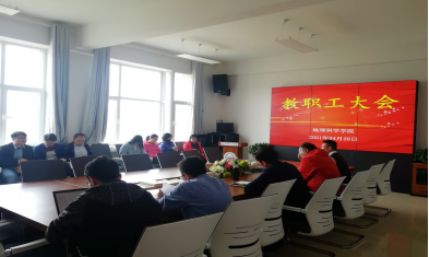 4月28日下午,地理科学学院召开全院教职工大会,对学院近期重点工作进行统一安排部署。会议由院党总支书记、副院长杨登兴主持,副书记洛加才让、副院杨显明及学院全体教师参加会议。