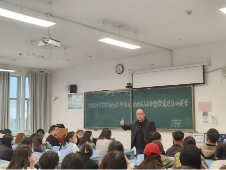 教育见习是地理科学专业学习的重要组成部分,是重要的实践教学环节之一,为了更好地安排、部署见习的各项事宜,召开此次教育见习动员会。在教育见习动员中,陈宗颜老师介绍了本次见习活动的目的、见习学校、基本要求等,强调见习期间的安全、团结、教师仪态,要求同学们做好课堂的观察、记录、实践活动,认真完成教育见习记录,践行“学高为师,身正为范”的理念。