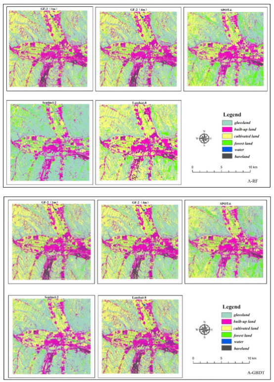 Figure 2. RF and GBDT land cover classification maps for region A