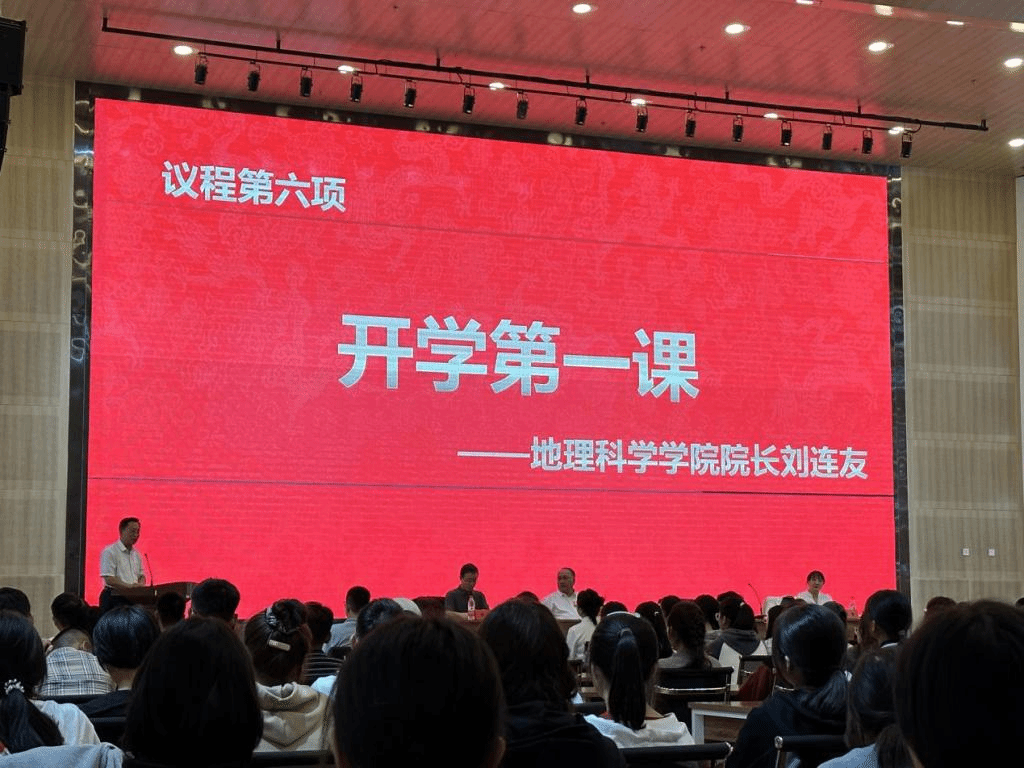 开学典礼结束后,刘连友院长以“从走近地理学到走进地理学”为题开讲“地理学第一课”,他向同学们讲述了什么是地理学,什么是地理科学,如何真正走进地理学,并通过前沿的科学研究为同学们指明了未来学习和研究的方向,全院师生受益匪浅。